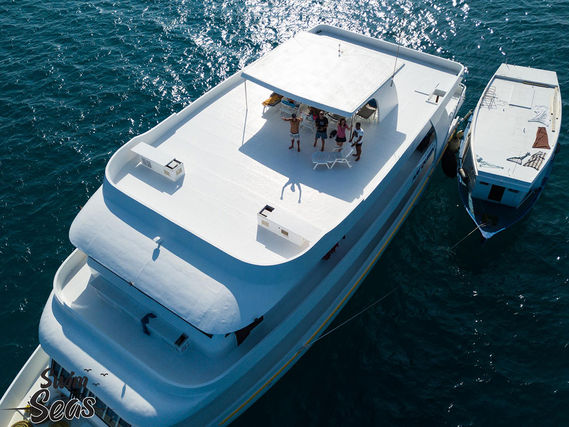 This corner of paradise is our favorite destination, both on the water and beneath the waves. You’ll live on a luxurious 40-meter yacht while cruising among the marvelous atolls and swimming with dolphins, sea turtles, sharks, mantas, and multitudes of exotic fish.